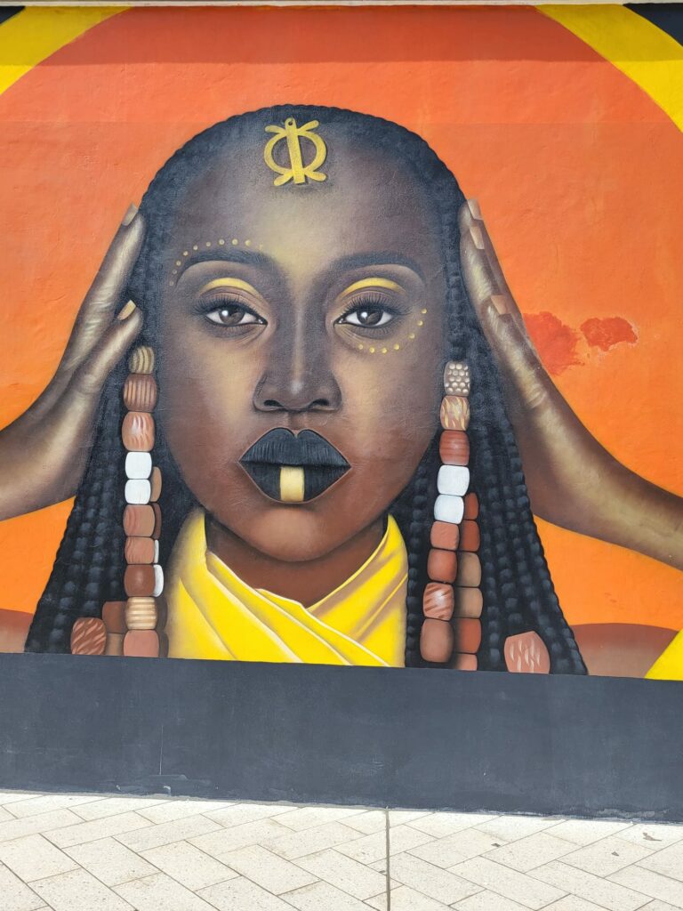 Le street art à Cotonou n’est pas décoratif. Il est politique, mémoriel, identitaire. Beaucoup de fresques font référence à l’histoire du Dahomey, à la traite négrière, aux Amazones du roi Béhanzin, aux traditions vaudou.